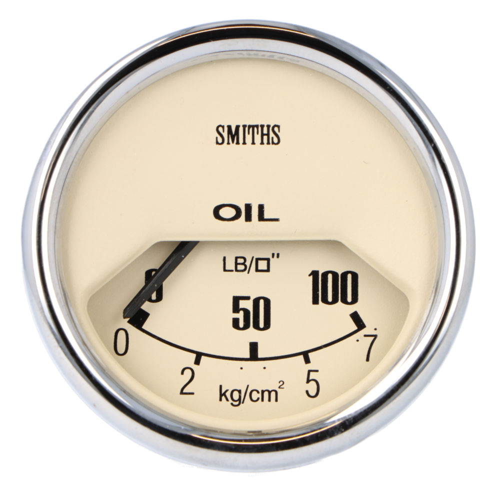 Whether you're restoring a vintage British classic or crafting a retro-inspired custom build, the Smiths Classic Magnolia Mechanical Oil Pressure Gauge provides reliable monitoring in a beautifully timeless design.