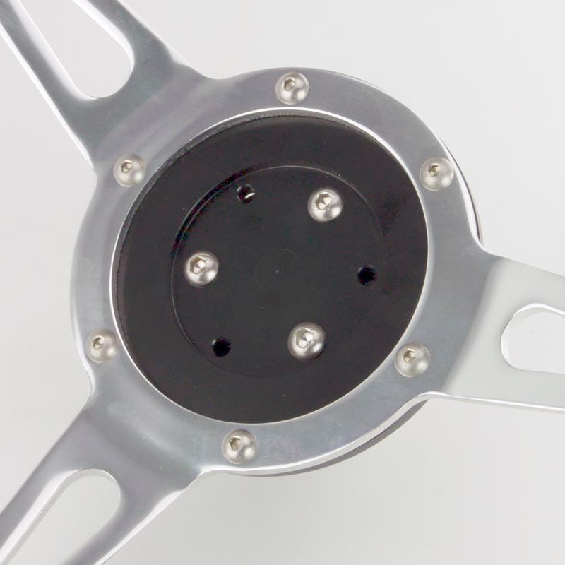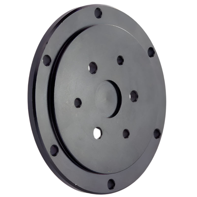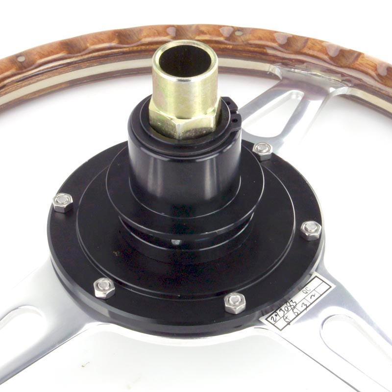 This Black anodised aluminium adapter mounts a steering wheel to our quick-release bosses.