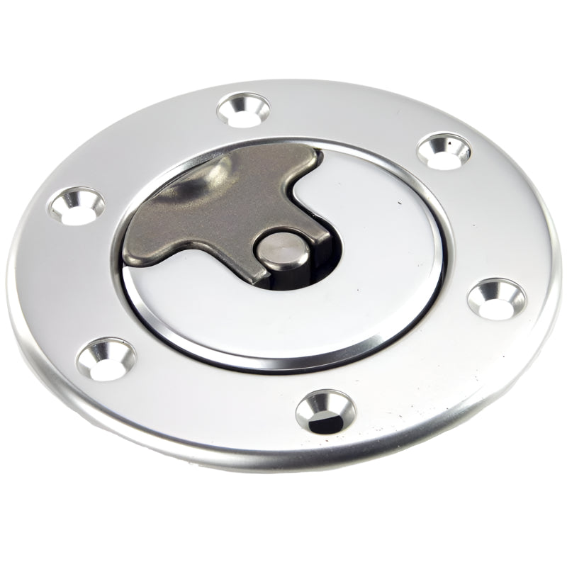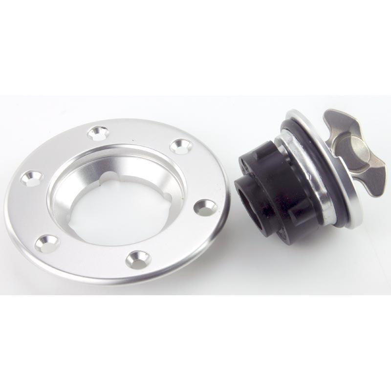 This 79mm tank-mounted, non-locking Aero fuel cap assembly is designed for direct mounting in the tank. It fits through a 51mm hole with a 64mm fixing hole PCD and has an overall height of 32mm. This non-breathing cap comes complete with a cork gasket and stainless steel fixing pack.