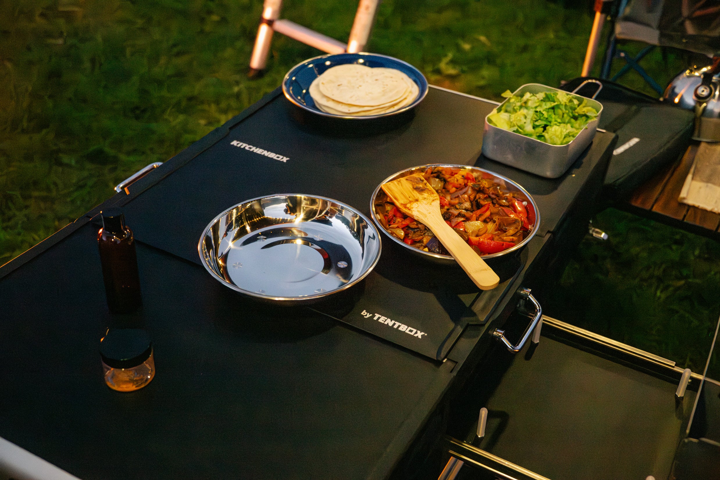 🍳 Complete Camp Kitchen: The KitchenBox comes fully equipped with a range of essential features, including a sturdy table, a reliable hob for cooking, comfortable stools for seating, a convenient chopping board, and a windbreak to shield your cooking area.