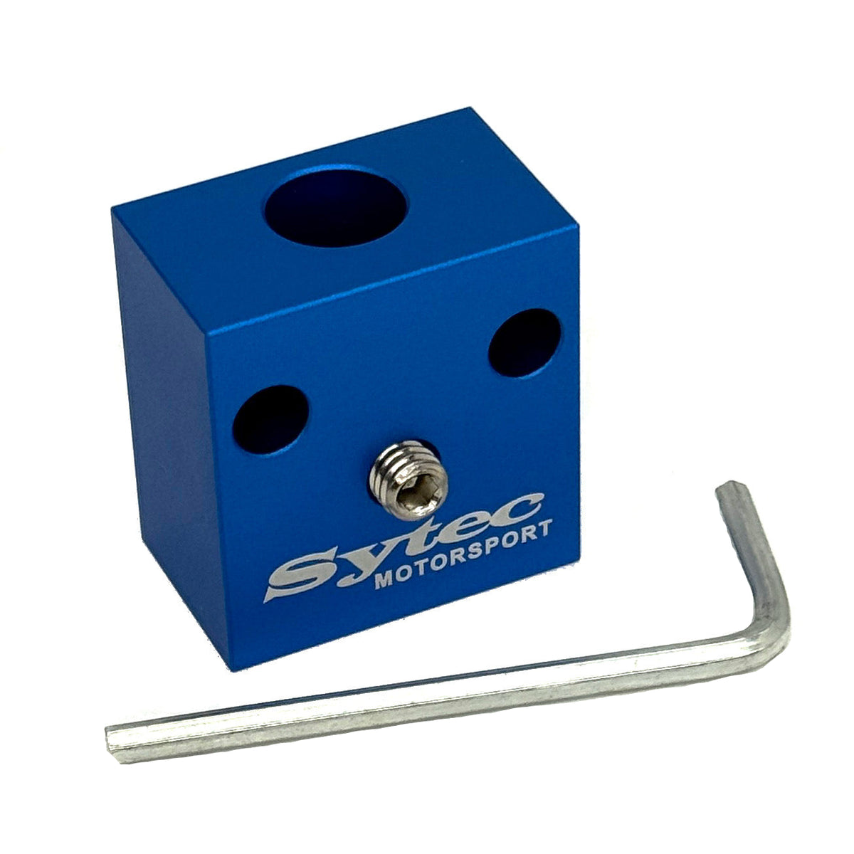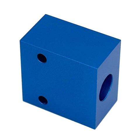 This 32mm x 34mm x 20mm aluminium block has an 11.2mm through hole for mounting to the top of your throttle pedal shaft and two, shouldered holes for your twin inner cables.