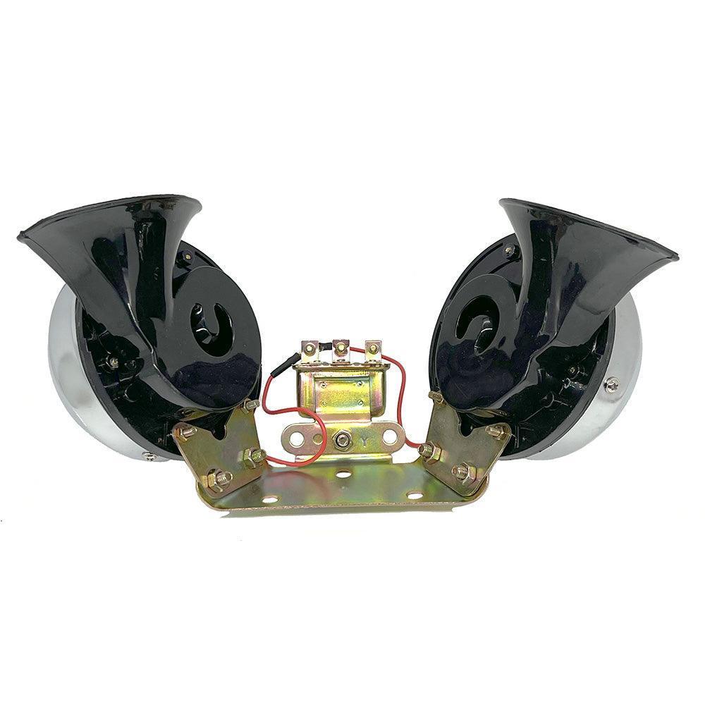 Upgrade your vehicle's sound with these powerful twin-tone electric horns, boasting a sleek chrome finish. These horns deliver a loud and clear sound, ensuring you're heard on the road. They come complete with a comprehensive fixing kit, including mounting brackets, nuts, bolts, relay and wiring for easy installation.