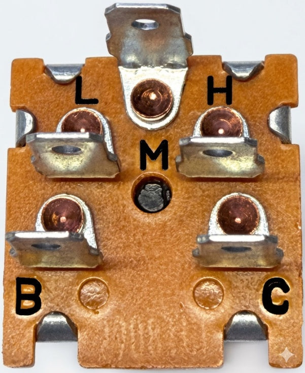 Three speed fan switch, rotary control cable and heater valve.