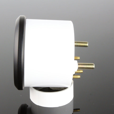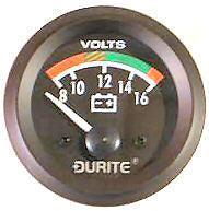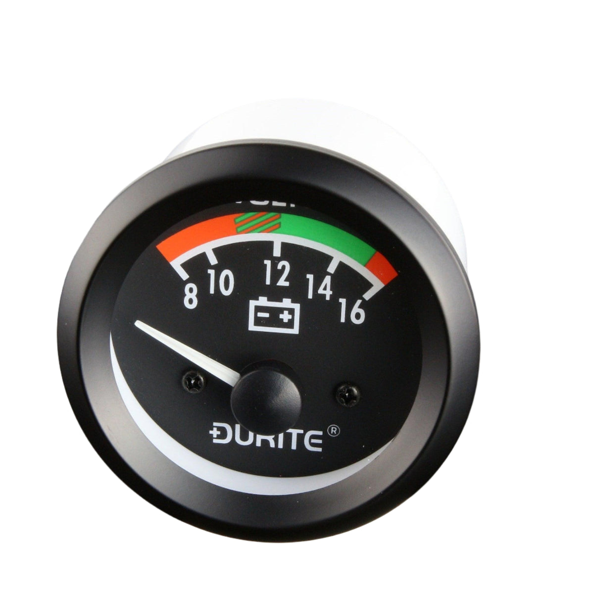 Analog Voltmeter gauge. This is a comprehensive kit consisting of a gauge and mounting clamp. Full fitting instructions are included. Satin black coated bezel, black dial face with white indications.