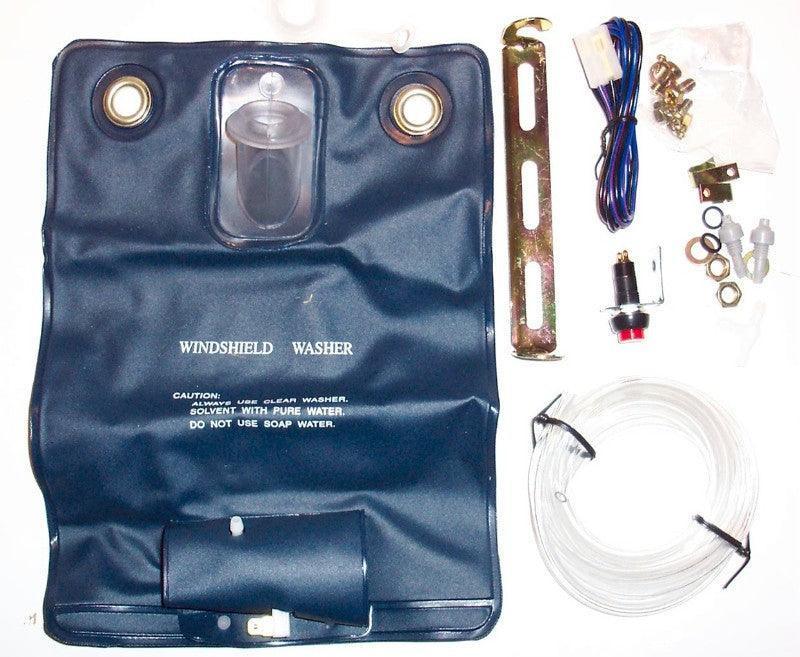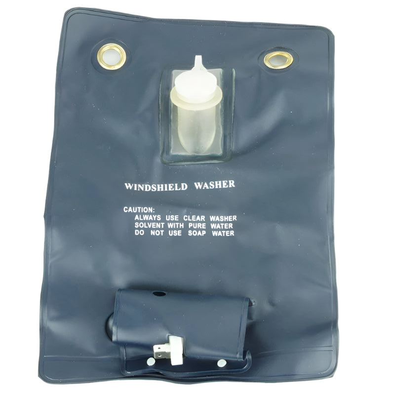 This comprehensive windscreen washer bag kit provides everything needed for a quick and easy installation. The 1.5-litre capacity bag, measuring 275mm x 210mm, ensures ample supply for clear visibility. The kit includes two jet nozzles, a 'T' piece, a push-button switch, wiring, 2 metres of hose, and a pump.